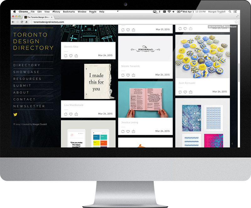 Margot Trudell is a web & graphic designer from Toronto, Canada. She has done design work from editorial to packaging to branding, often experimenting with untraditional and non-digital methods. She prefers to write her HTML and CSS by hand, and plans events for designers around the city. She graduated from OCAD with a Bachelor of Design Degree in 2011.
